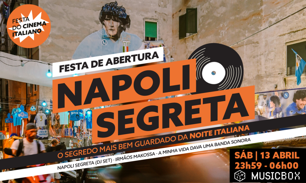 A Festa do Cinema Italiano regressa à pista do Musicbox com a Festa mais esperada de abril. Este ano a nossa Festa de Abertura apresenta o melhor do disco/funk napolitano e arredores. Guiados pela mão dos NAPOLI SEGRETA, a noite começa com A MINHA VIDA DAVA UMA BANDA SONORA e termina com os IRMÃOS MAKOSSA.